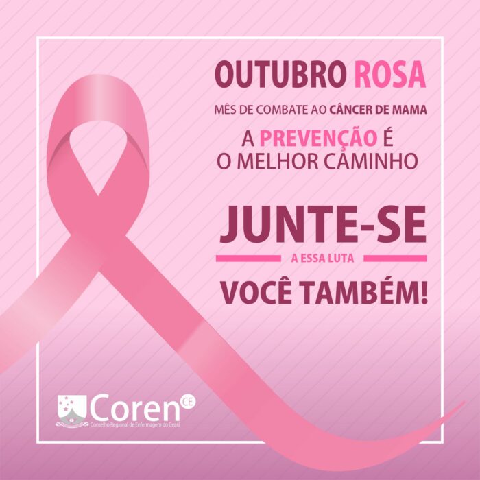 O Conselho Regional de Enfermagem do Ceará (Coren-CE) iniciou ontem (01/10) mais uma ação em alusão à campanha Outubro Rosa. Durante todo o mês de outubro os profissionais que comparecerem à unidades do órgão encontrarão funcionários vestindo a marca da campanha e dispostos a tratar sobre o tema que é uma das principais causas de morte no Brasil.