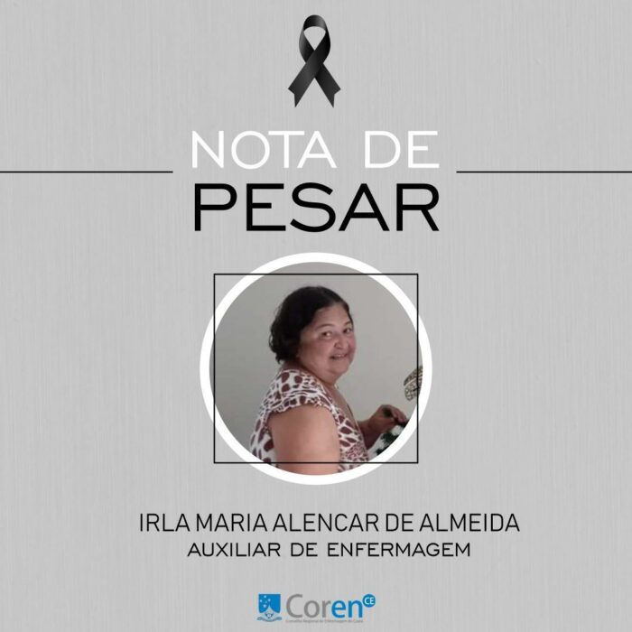 Enlutados, nós, do Conselho Regional de Enfermagem do Ceará (Coren-CE) comunicamos o falecimento da auxiliar de Enfermagem Irla Maria Alencar de Almeida, ocorrido ontem (28/02) em virtude de complicações causadas pela COVID-19.