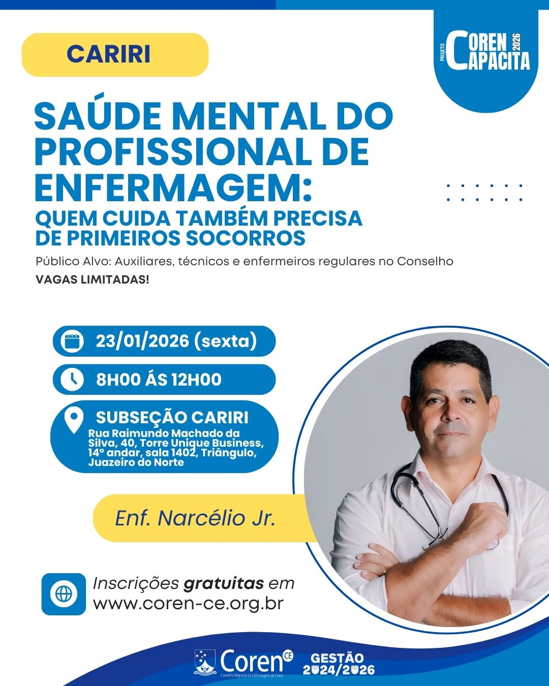 👥 Público-alvo: auxiliares, técnicos e enfermeiros com inscrição regular no Coren-CE.
