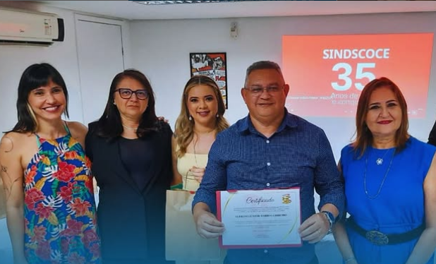 Servidor do Coren-CE é homenageado pelo SINDSCOCE pelos 33 anos de dedicação à Enfermagem Cearense