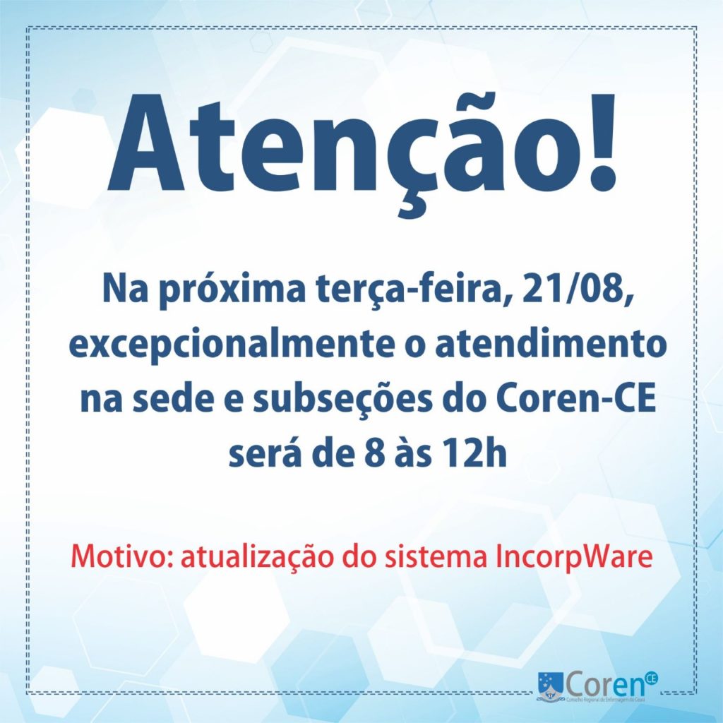 Atenção! Hoje o Coren-CE só funciona até meio dia