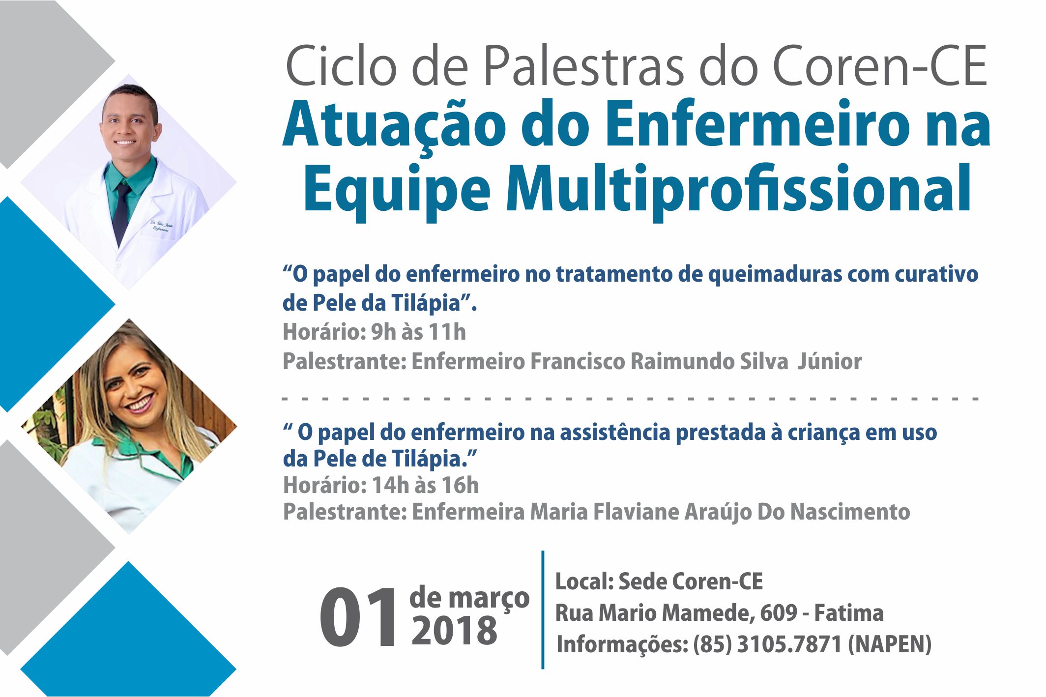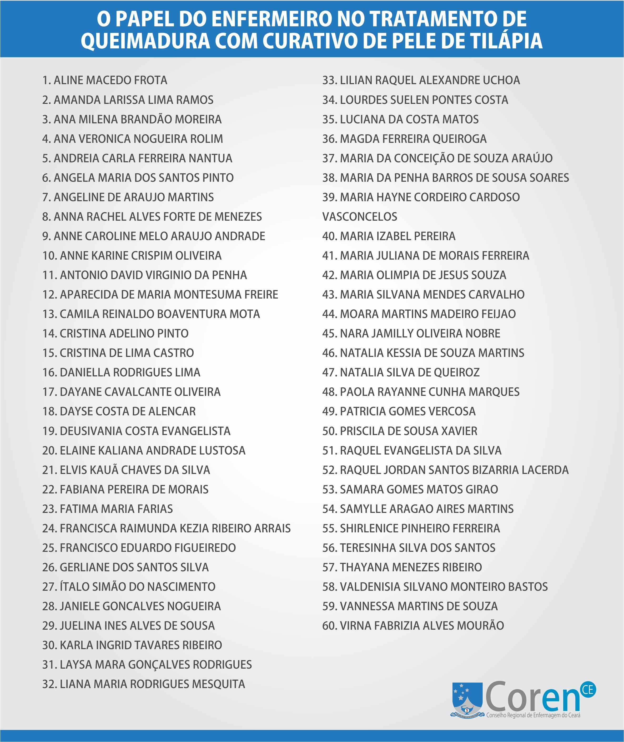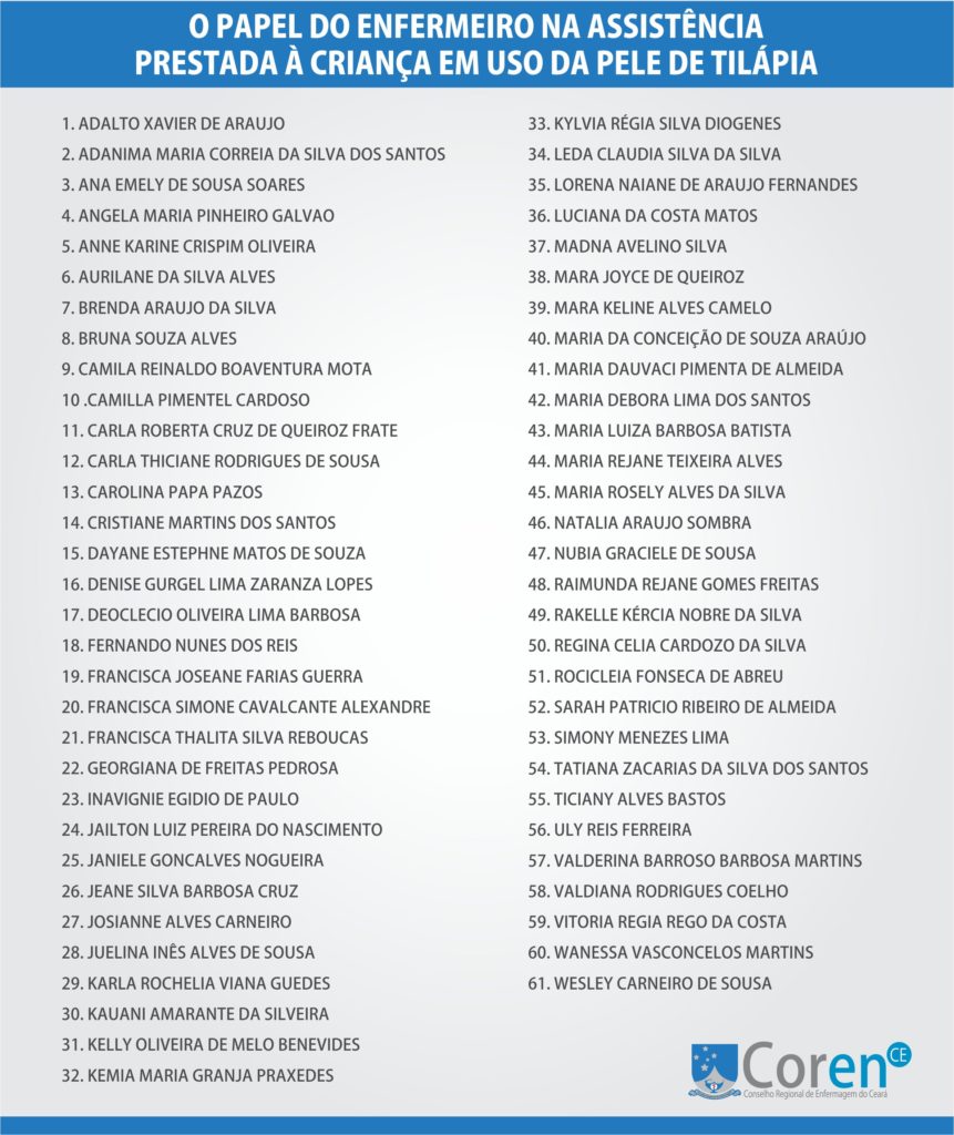 O Conselho Regional de Enfermagem divulgou hoje (21/02) a lista de inscritos para as atividades do Ciclo de Palestras do Coren-CE que acontece no próximo dia 01 de março.
