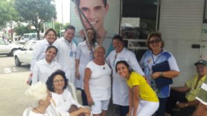 A senhora Maria Coelho, mora em Aracati mas todo mês vem assistir a missa e revela que não vai pra casa sem antes visitar o Coren-Móvel. “Como sou diabética fico atenta a minha saúde. Então, além de verificar se está tudo bem comigo, reencontro amigas que fiz aqui mesmo na frente do ponto de apoio do Coren. Sem contar que adoro o tratamento que recebo desses jovens. São educados e atenciosos. Gosto muito, revela a aposentada. Já a senhora Florir Sousa, de Fortaleza, também não falta as ações de saúde do Coren-CE, faz questão de dizer que já incluiu a visita ao Coren Móvel à sua rotina de prevenção à saúde.