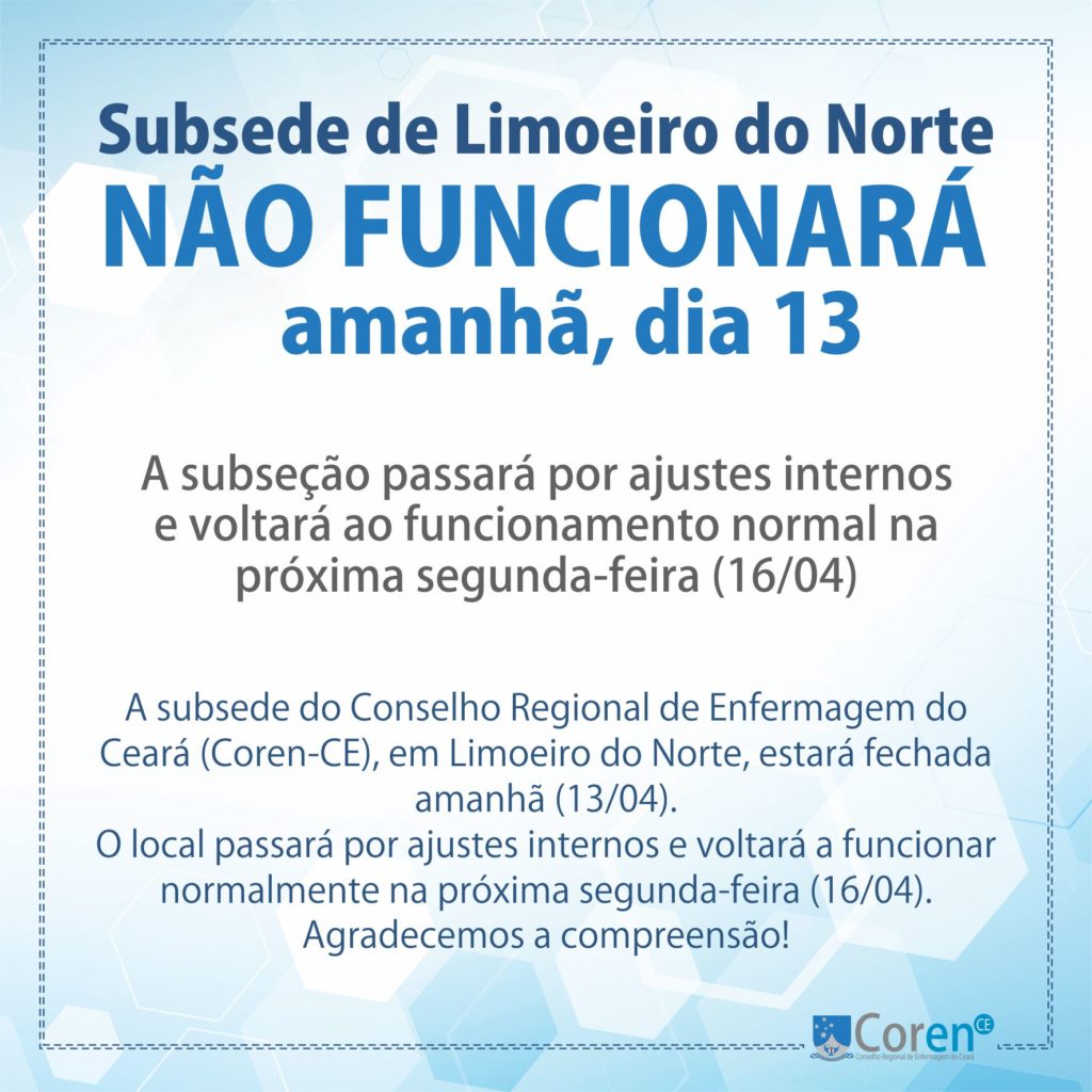 Subsede de Limoeiro do Norte não funcionará amanhã, 13
