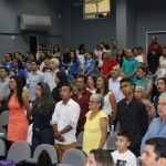 O evento contou com a cerimônia do jaleco que marca a entrada na faculdade de Enfermagem. Acadêmicos da primeira turma receberam emocionados os jalecos entregues por seus padrinhos.